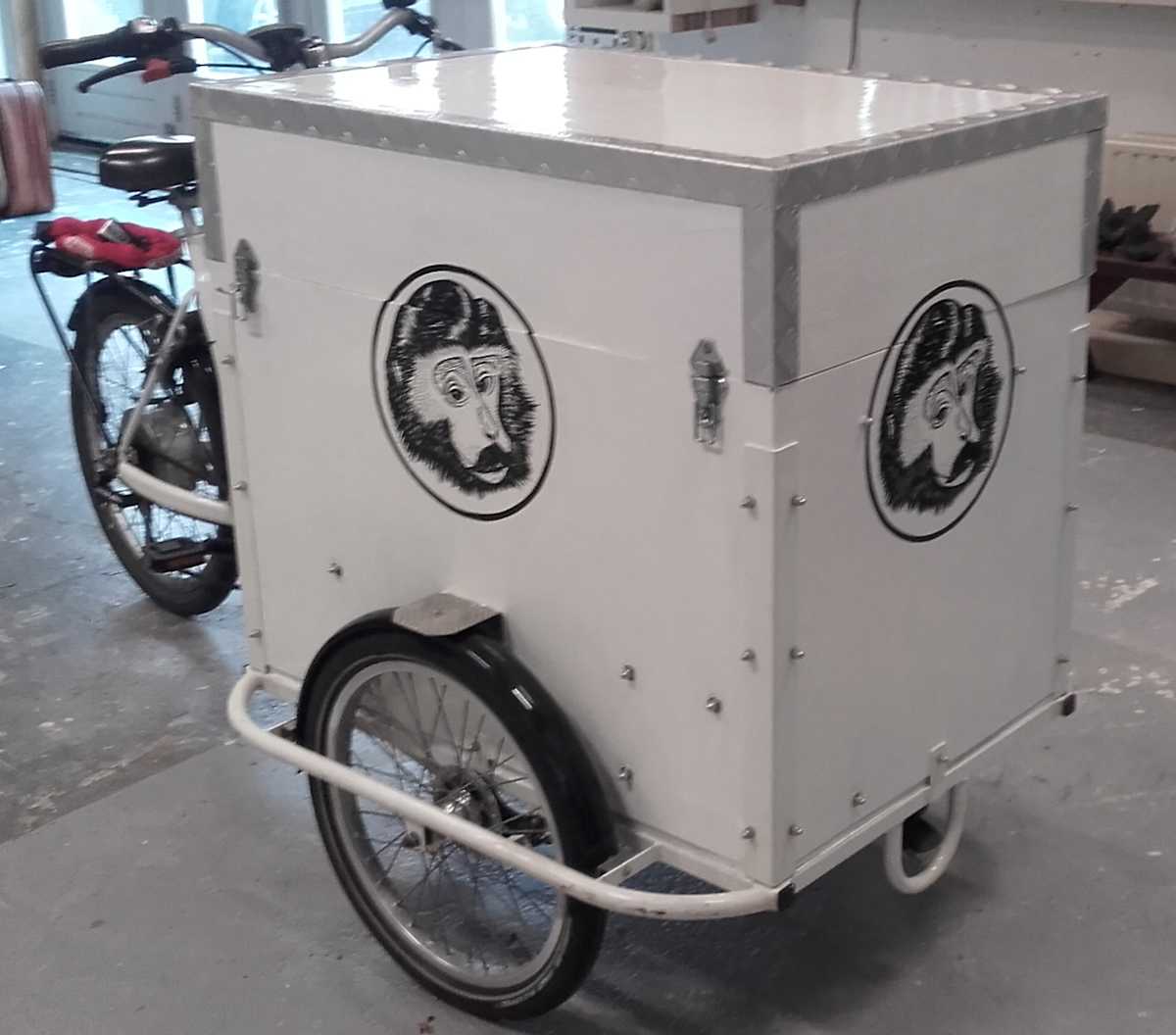 Bakfiets painting for local deliveries by bike in Amsterdam.