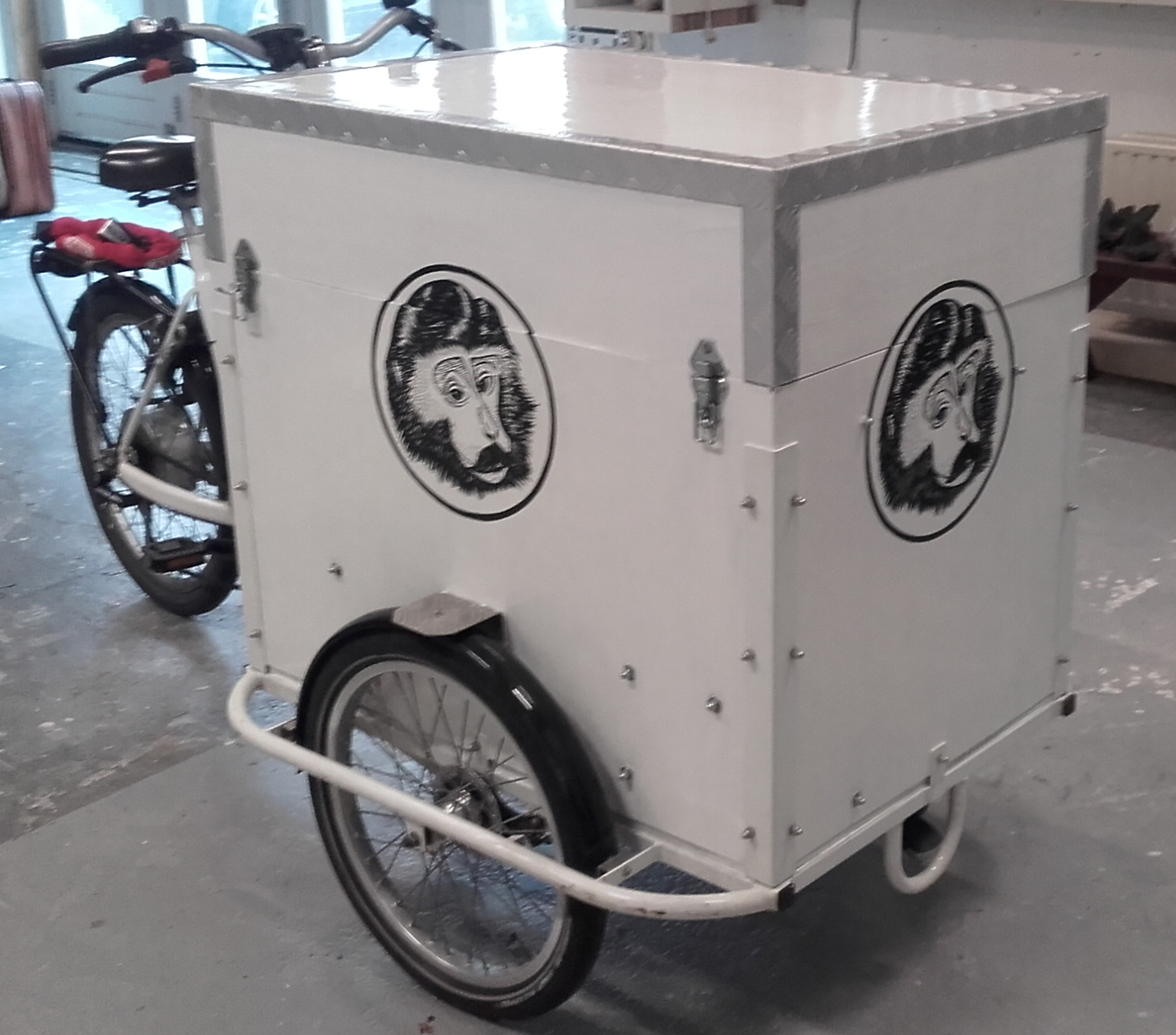 Bakfiets painting for local deliveries by bike in Amsterdam.